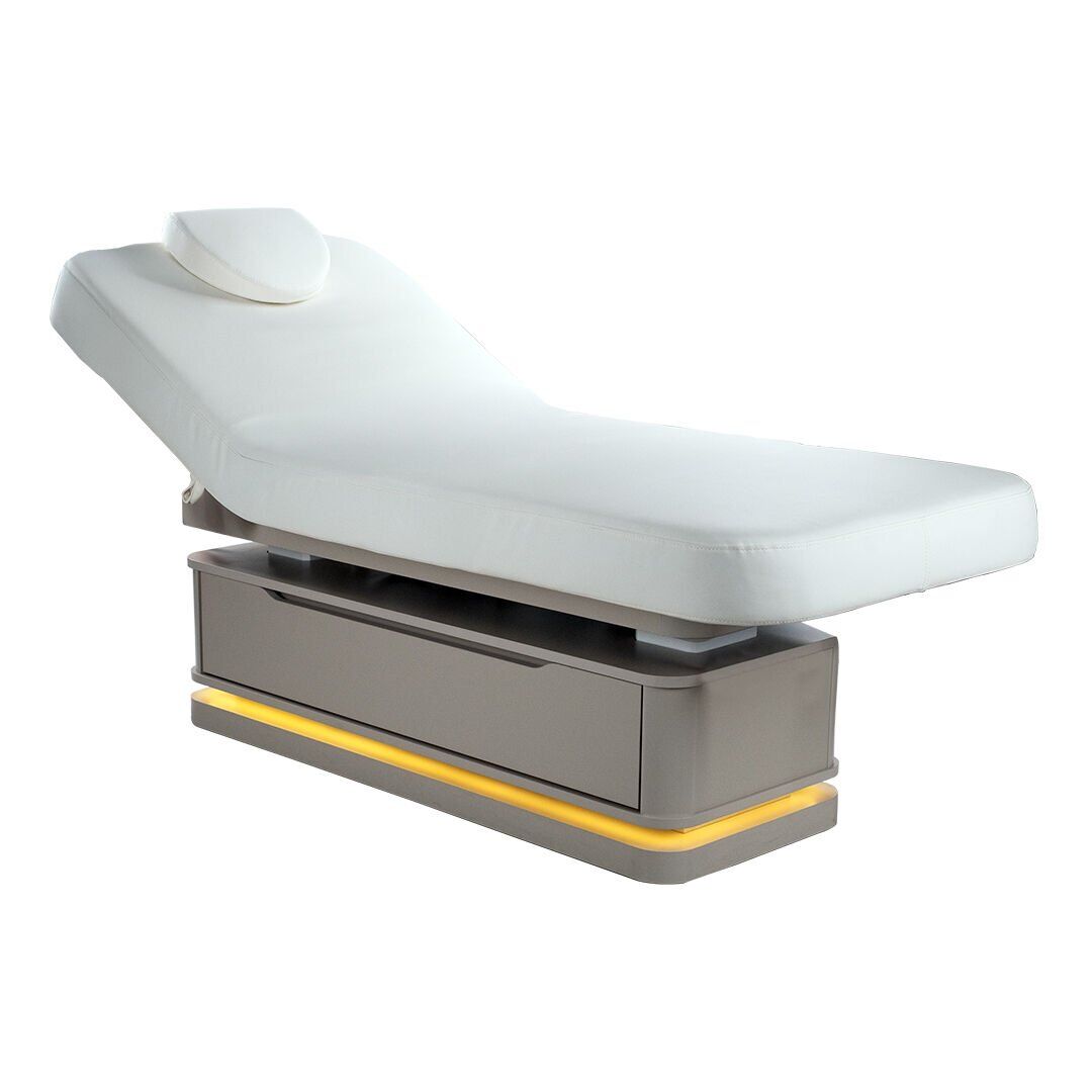 Bu özel bakım yatağı, kuştüyü sünger üzerine deri döşemesiyle cilde zarif bir dokunuş sunar. Her ayrıntısında estetik ve konforun birleştiği bu tasarım, spa ve bakım deneyimini bir üst seviyeye taşır.