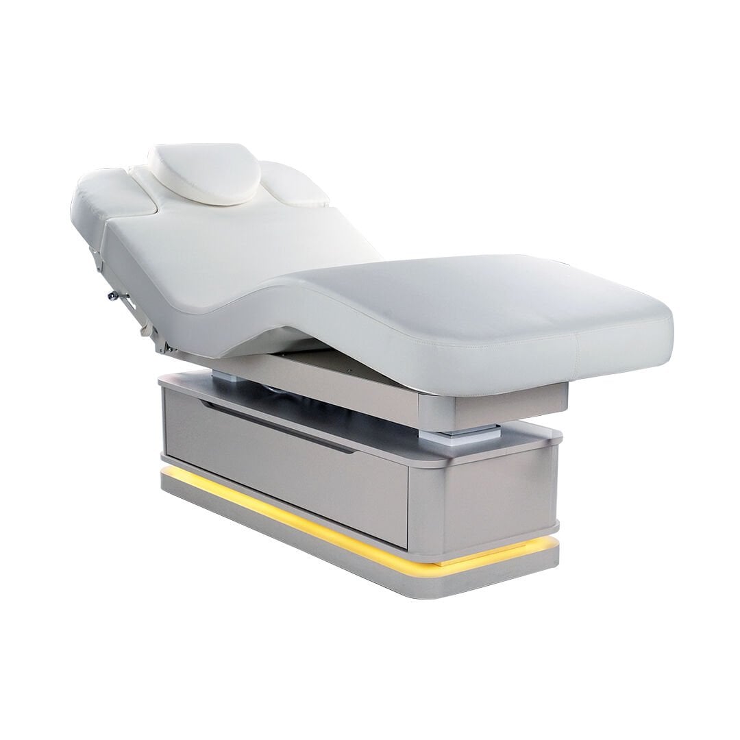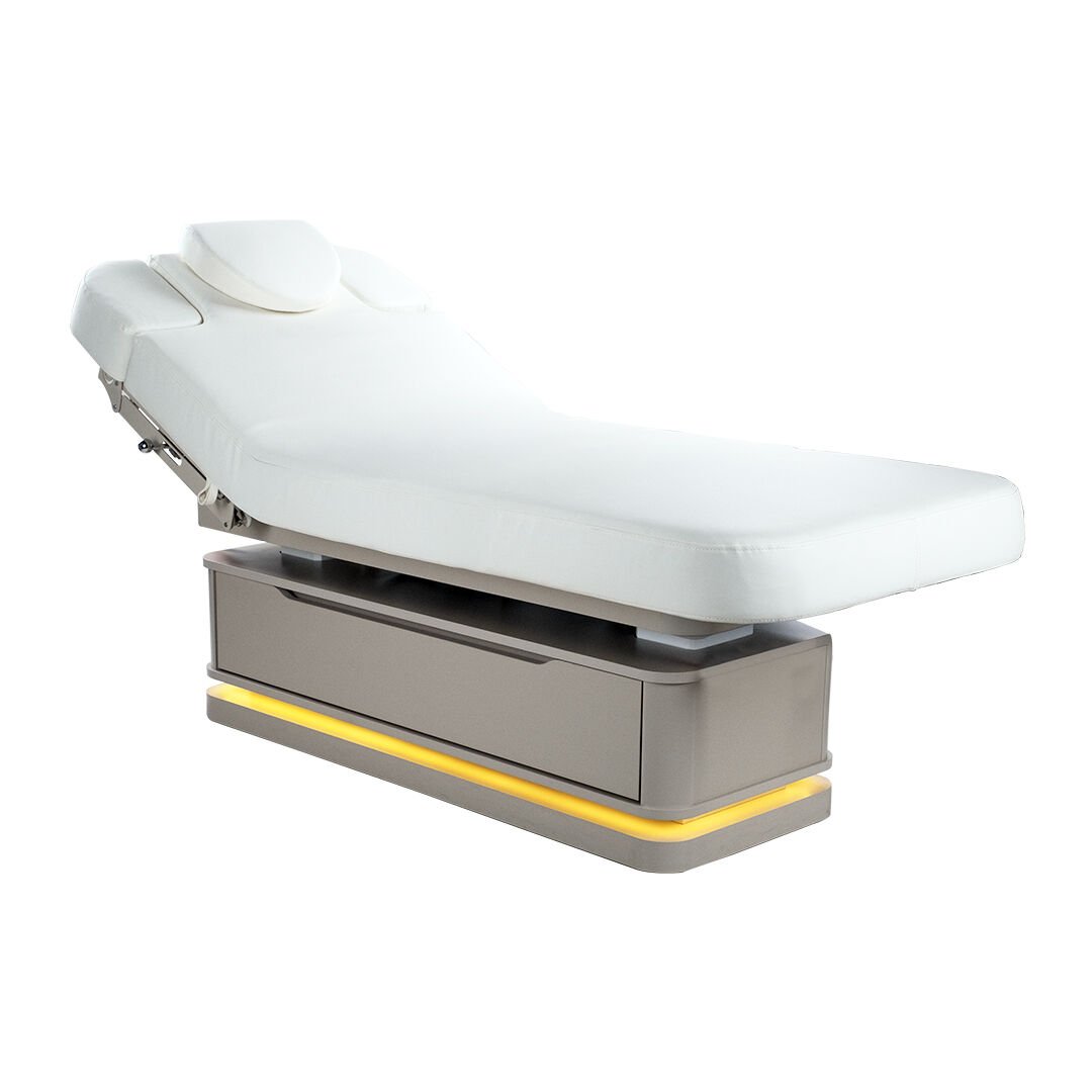 Bu özel bakım yatağı, kuştüyü sünger üzerine deri döşemesiyle cilde zarif bir dokunuş sunar. Her ayrıntısında estetik ve konforun birleştiği bu tasarım, spa ve bakım deneyimini bir üst seviyeye taşır.